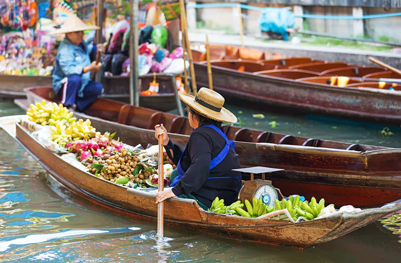 (約1.5-2小時車程)參觀丹嫩莎朵水上市場 — 市內餐廳午餐 — 美功鐵道市集